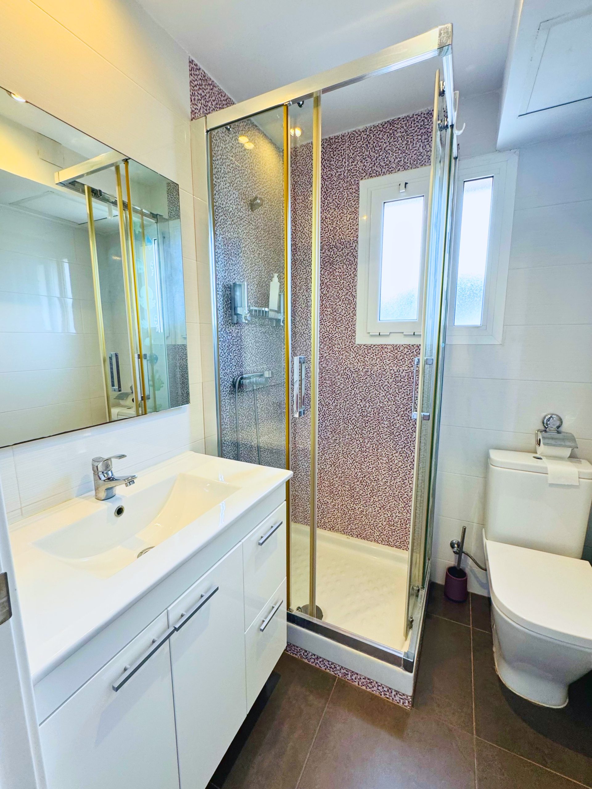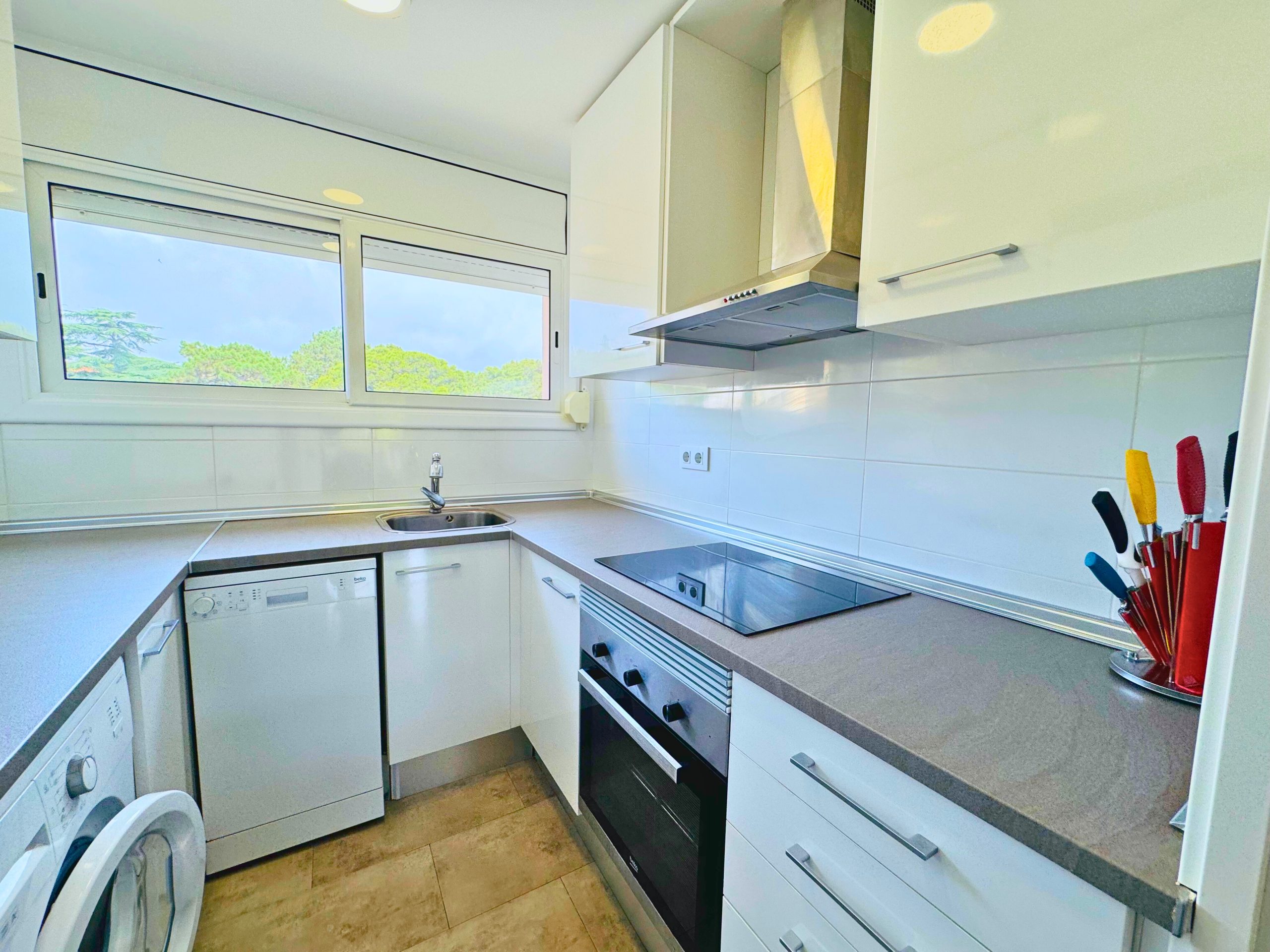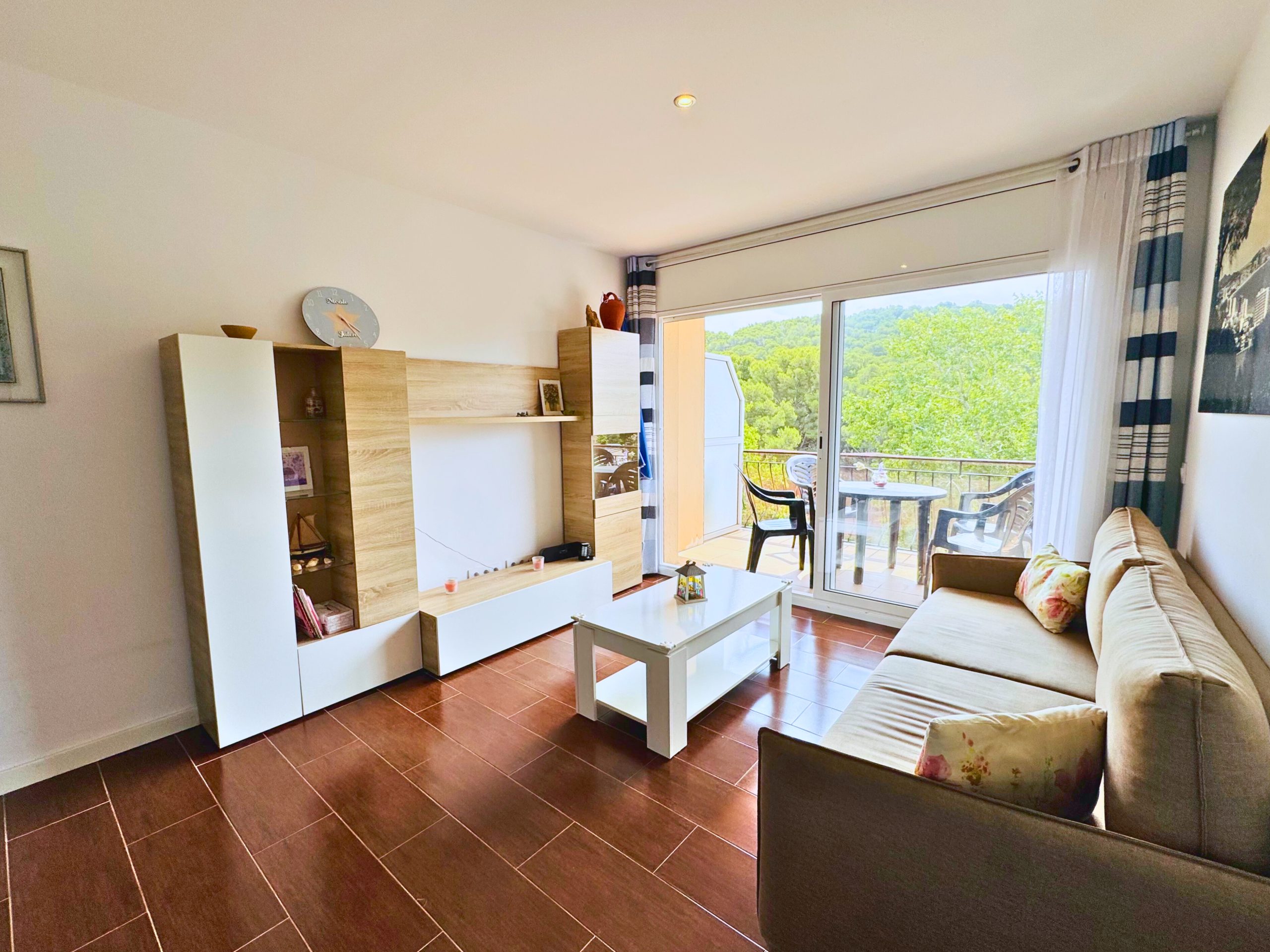 Piso reformado con terraza, parking y trastero a pocos pasos de la playa – Palamós, Costa Brava Este encantador piso, completamente renovado, ofrece una distribución funcional y una excelente entrada de luz natural. El espacioso salón-comedor se abre a una agradable terraza exterior, ideal para relajarse o disfrutar de comidas al aire libre. La cocina, totalmente equipada, cuenta con un gran ventanal que favorece la ventilación y la luminosidad. Dispone de dos habitaciones: una doble y otra individual, ambas con armarios empotrados que optimizan el espacio de almacenaje. El baño, moderno y bien aprovechado, incluye una ducha tipo italiana de obra. El inmueble es completamente exterior, con cerramientos de PVC y doble acristalamiento que garantizan un buen aislamiento térmico y acústico. Su orientación sur y ubicación en esquina le aportan sol durante todo el día, así como mayor privacidad y amplitud visual. Además, el piso incluye una plaza de aparcamiento cubierta y un trastero, lo que lo convierte en una opción ideal tanto para vivir todo el año como para invertir en una propiedad en la Costa Brava, cerca del mar.